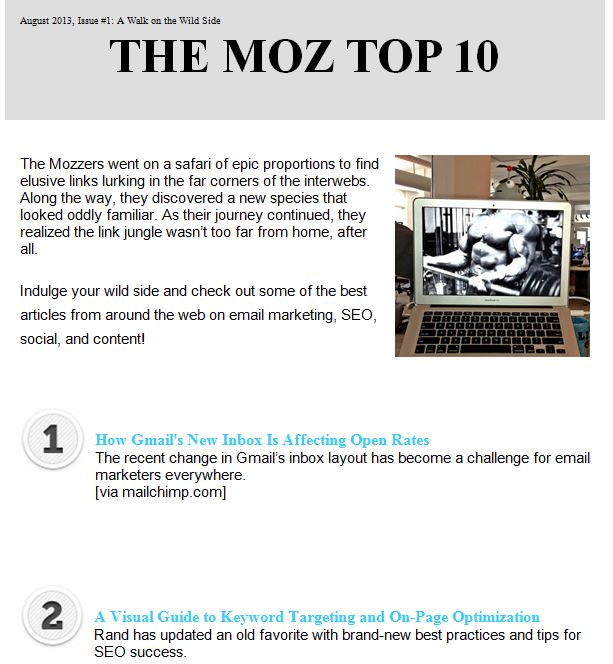 Almost everything Moz does with marketing seems to be spot-on and their email newsletter is no exception. Instead of pushing their agenda with tons of their own posts, the Moz Top Ten pulls a bunch of great posts from around the web and shares them with its audience.