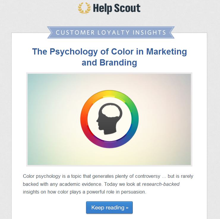 We can’t say enough about Help Scout’s minimalist approach to email. They’re focused on customer service, acquisition, and loyalty. Each email only contains a link to ONE blog post with a custom image.